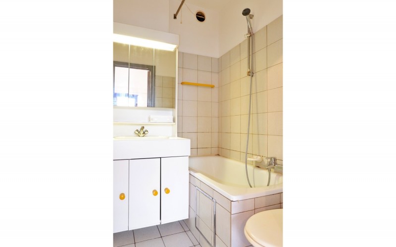 Aan de achterzijde bevinden zich de keuken en de badkamer, beide compact en efficiënt ingedeeld.