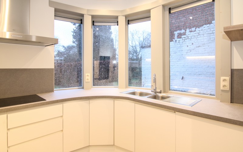 - aansluitend de volledig ingerichte keuken met zicht op het terras en de tuin. Voorzien van alle inbouwtoestellen.